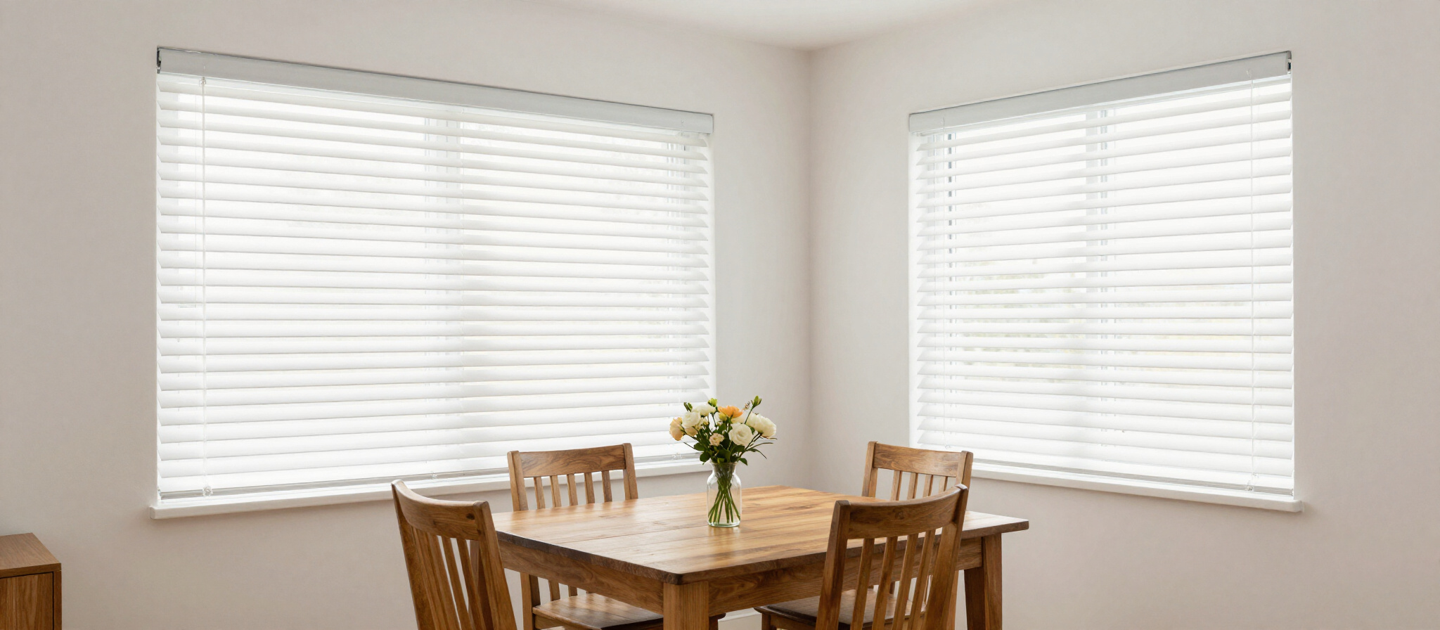 Venetian blinds are classic and versatile window coverings featuring adjustable horizontal slats for precise control of light and privacy. Available in materials such as aluminium, timber, and PVC, they offer a sleek and practical design suitable for any interior. Easy to adjust and maintain, Venetian blinds are ideal for homes and offices, adding a clean and functional finishing touch to any space.