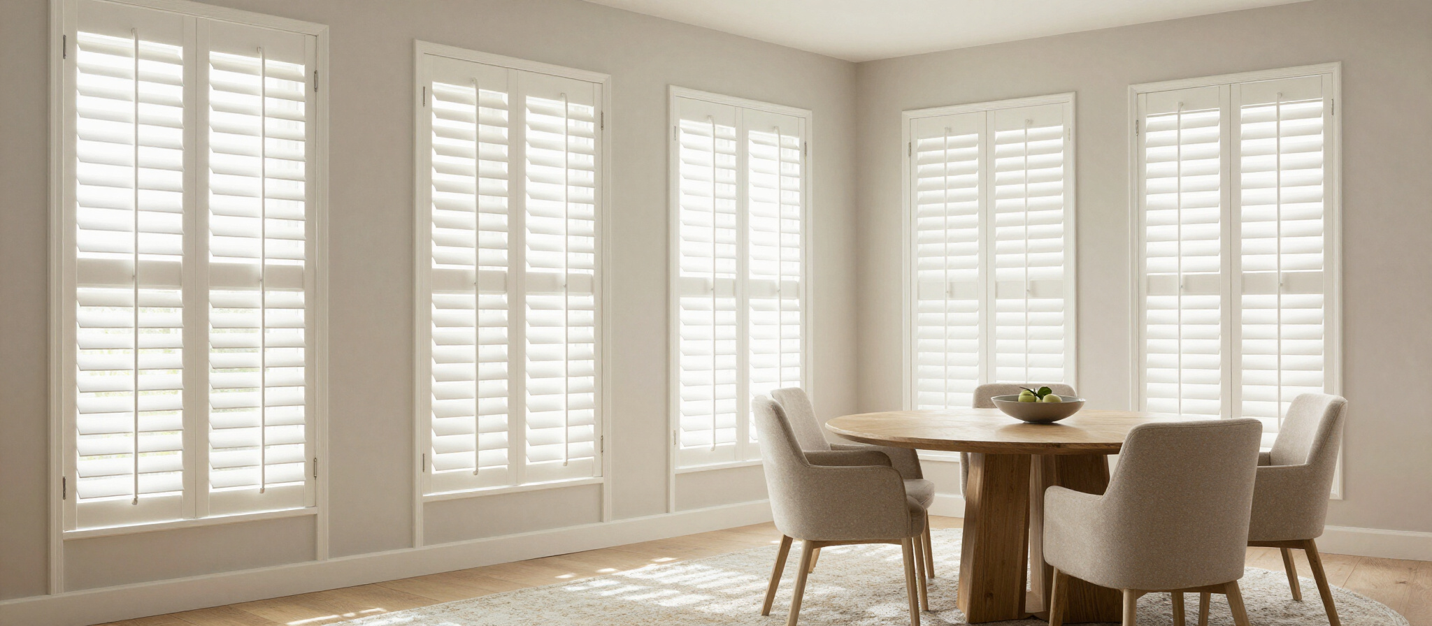 Plantation shutters are timeless window coverings with adjustable horizontal louvers for excellent light control, privacy, and insulation. Made from durable materials like timber or PVC, they offer a clean, structured look that suits modern and traditional interiors, adding lasting style and value to any space.