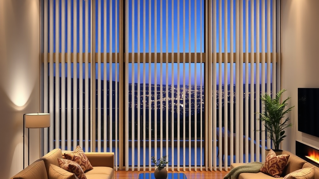 Vertical blinds are sleek and practical window coverings with adjustable slats for precise light control and privacy. Ideal for large windows and sliding doors, they offer a clean, modern look while being durable and easy to maintain for homes and offices alike.