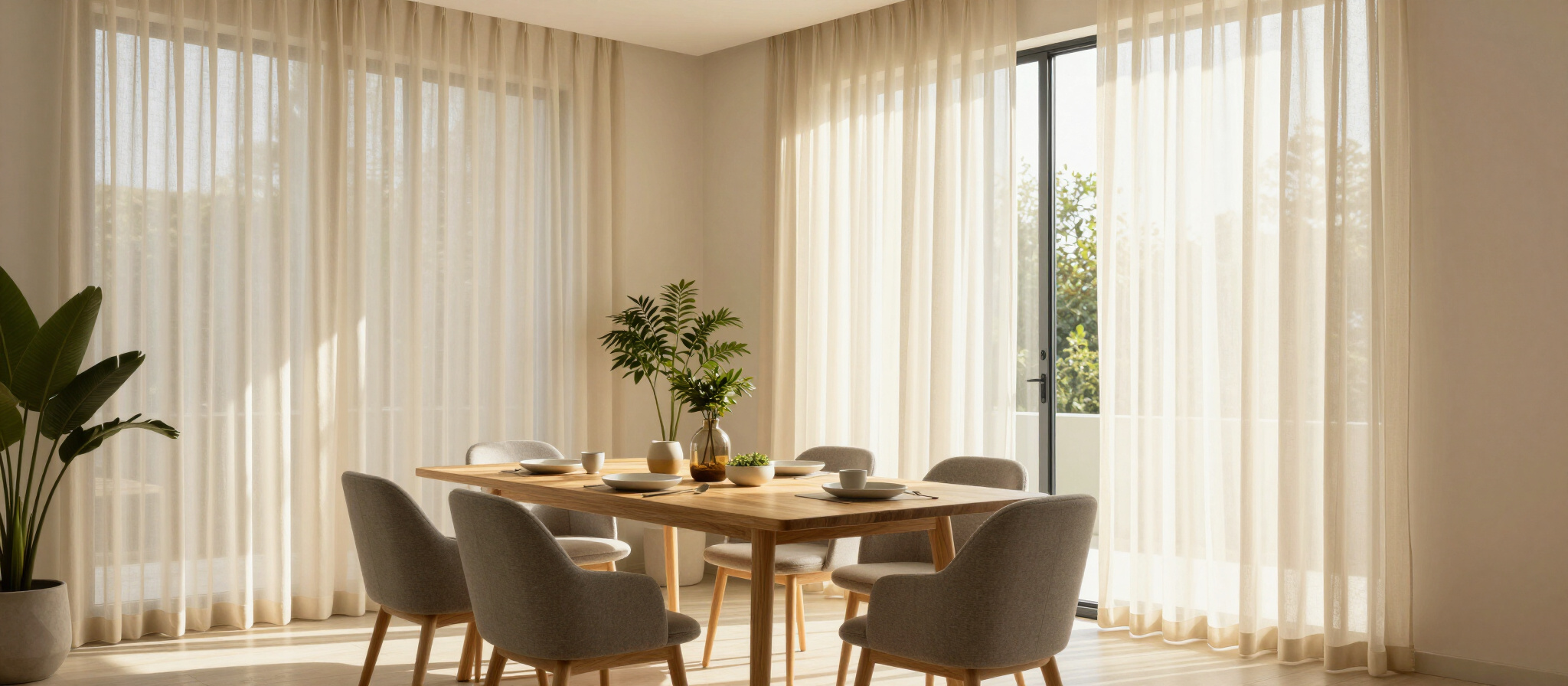 Sheer curtains are lightweight, elegant window coverings that gently filter natural light while maintaining privacy. Made from soft, translucent fabric, they create a bright and airy atmosphere, adding a touch of sophistication to any room. Perfect for layering or using on their own, sheer curtains suit modern homes, apartments, and living spaces.